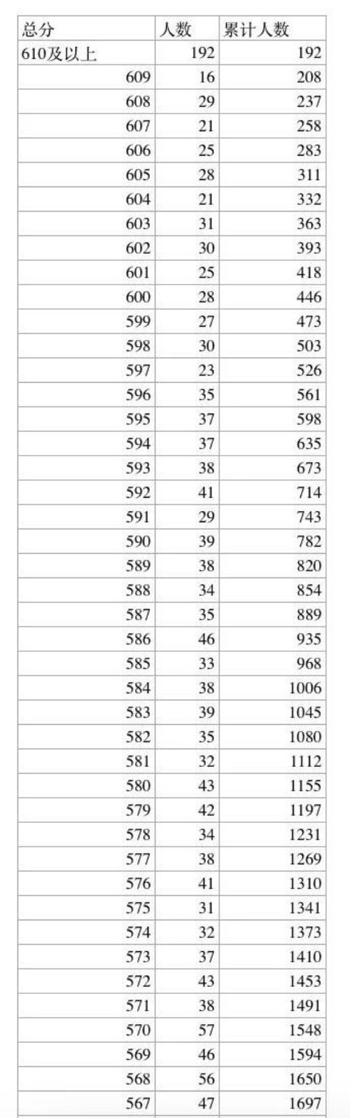 2023年廊坊市中考一分一档